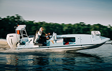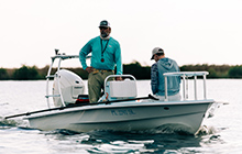 Named after the Marquesas Keys near Key West, because they lie across the Boca Grande channel, which can become 5 miles of hell without much notice. A technical skiff with a buttery ride in a chop that will deliver you dry and happy, and then allow you to silently pole up to a school of bonefish. Room for four and lots of storage.