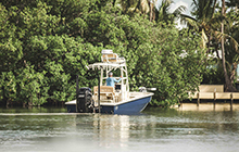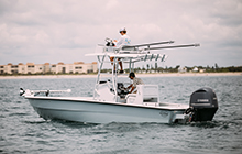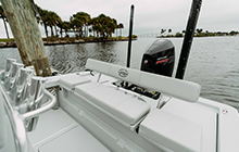 Taking the Hell’s Bay philosophy to even greater lengths. The Estero 24 is putting the “Bay” into “Hell’s Bay.” A bay boat designed to be the ultimate in- and near-shore fishing machine. An uncompromising tool with two live wells, a huge fish box and room for your family and friends, all wrapped up in the deadly silent hull that Hell’s Bay is known for.