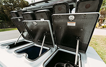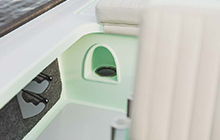 - Quiet & dry hatches with oversized gutters sealed by rubber gaskets
