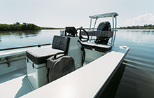 Designed to be a compact, all-terrain skiff with a soft, dry ride in the open waters of the Keys, the Biscayne gives you the best of both worlds: the ability to cross the nastiest water while keeping you dry and your kidneys intact, along with the ability to silently pole the skinniest flats. Big boat performance in a 16 foot package.